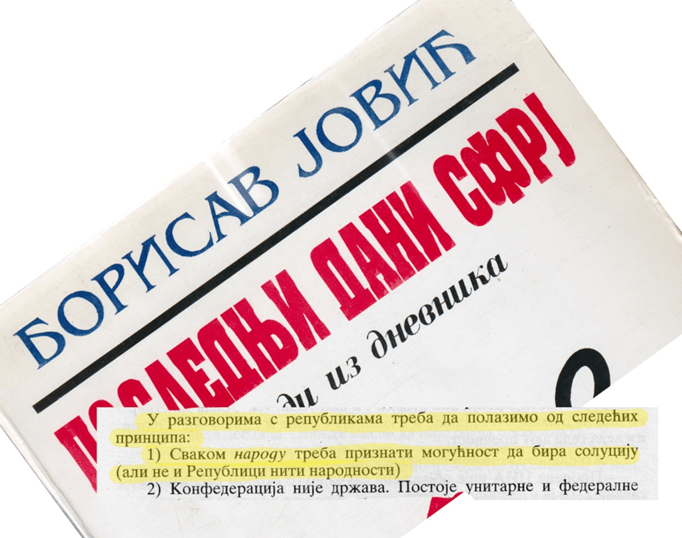 [2] Veljko Kadijević u razgovoru s Borisavom Jovićem (4. januara 1991). V. Borisav Jović, Poslednji dani SFRJ, Kompanija Politika, Beograd, 1995, s. 238.